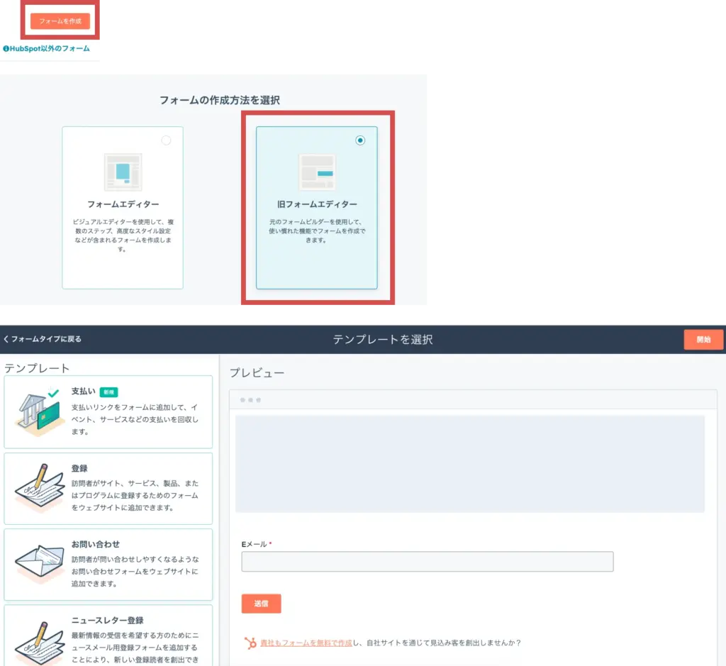 書籍の画面と実際の管理画面構成が異なっていたため、検索ボックスから「フォーム」を探し、旧フォームエディタを選択することで書籍通りの画面を再現できました。